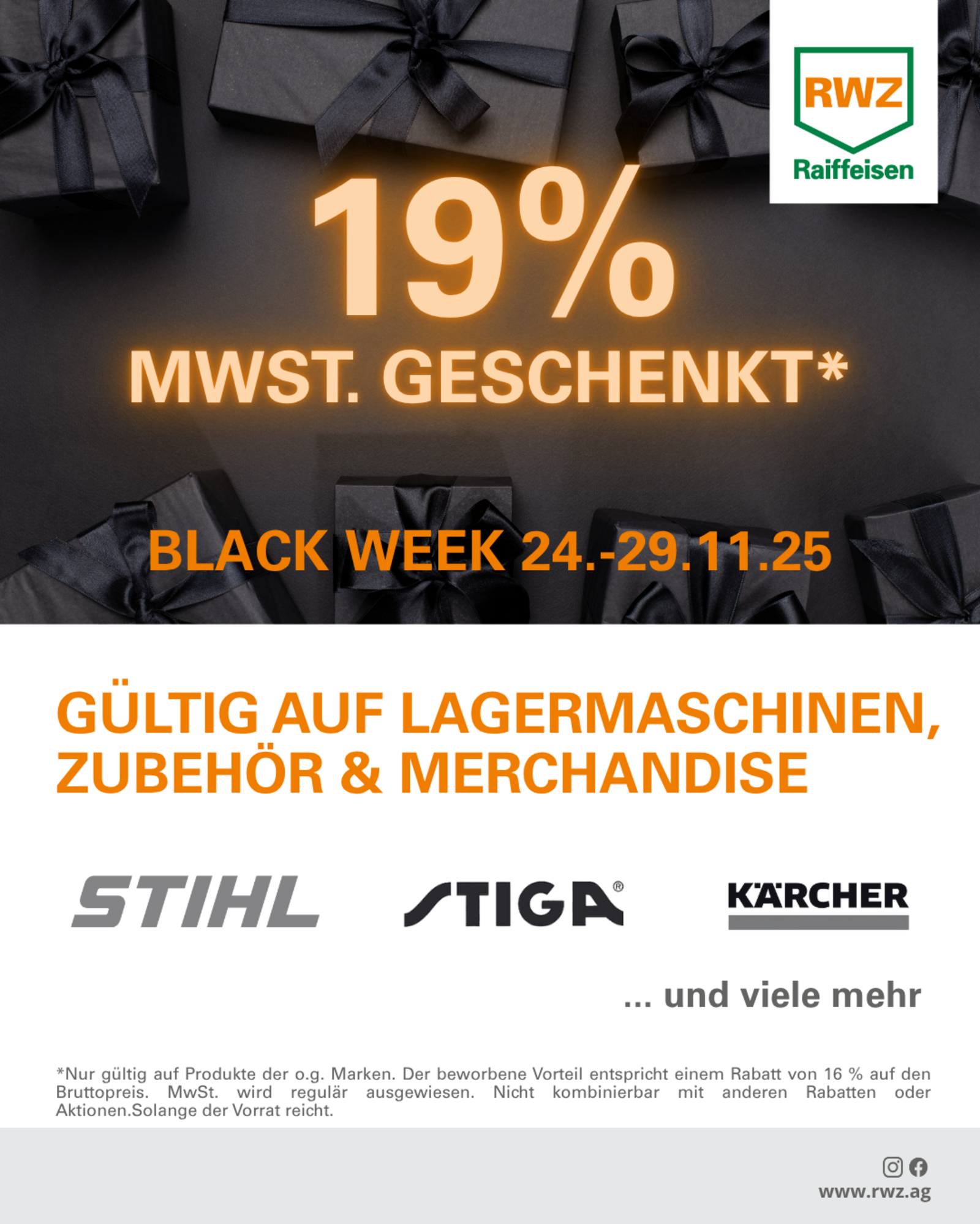 Wir schenken dir die Mehrwertsteuer* auf alle Lagermaschinen, Zubehör und Merchandising-Artikel unserer starken Marken STIHL, Stiga, Kärcher und vielen mehr!