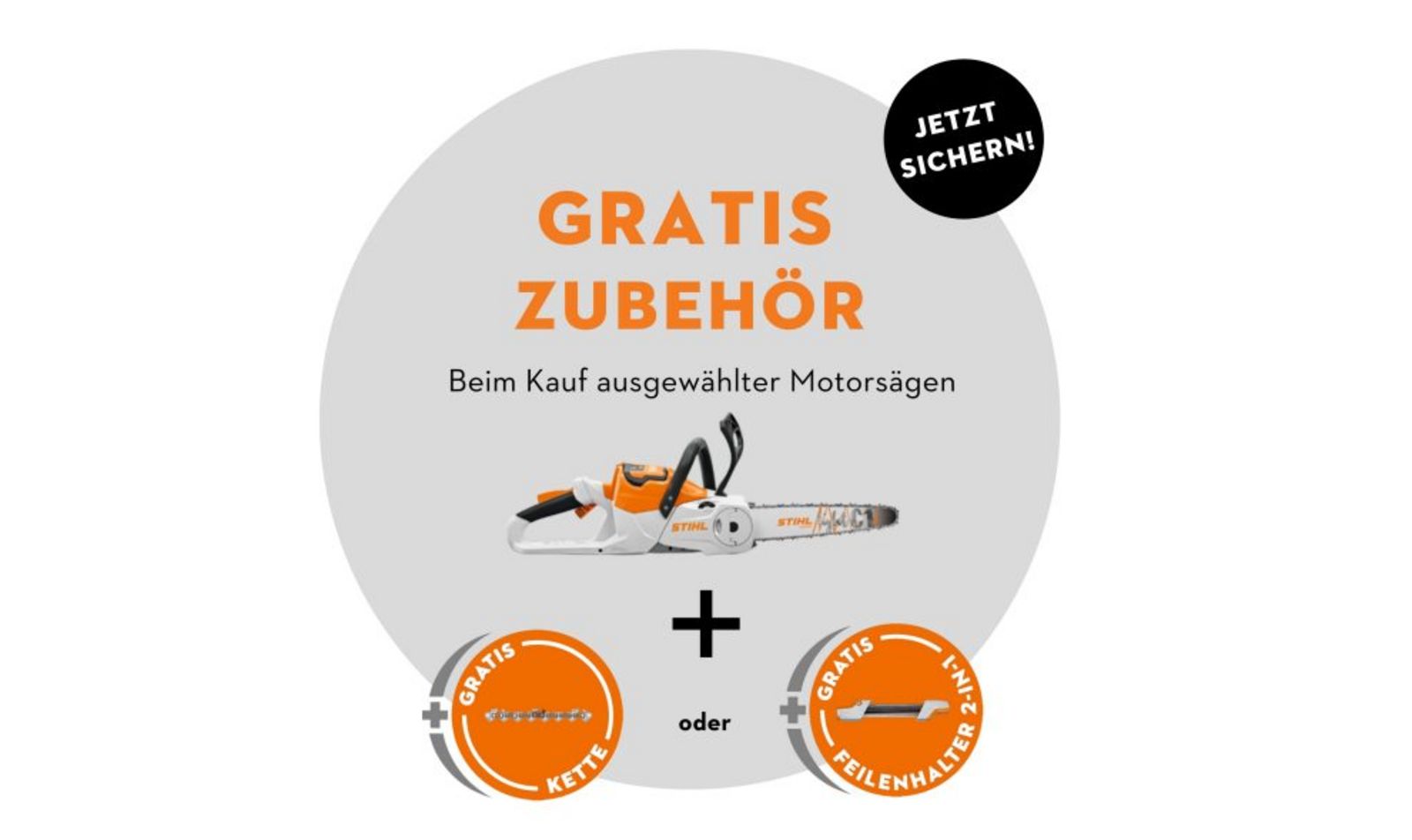 Sichere Dir jetzt das perfekte Plus für Deine neue Motorsäge – ohne Aufpreis. Beim Kauf einer ausgewählten Motorsäge erhältst Du je nach Modell eine präzisionsgeschärfte Sägekette oder den praktischen 2-in-1 Feilenhalter für schnelle, effiziente Wartung gratis dazu.